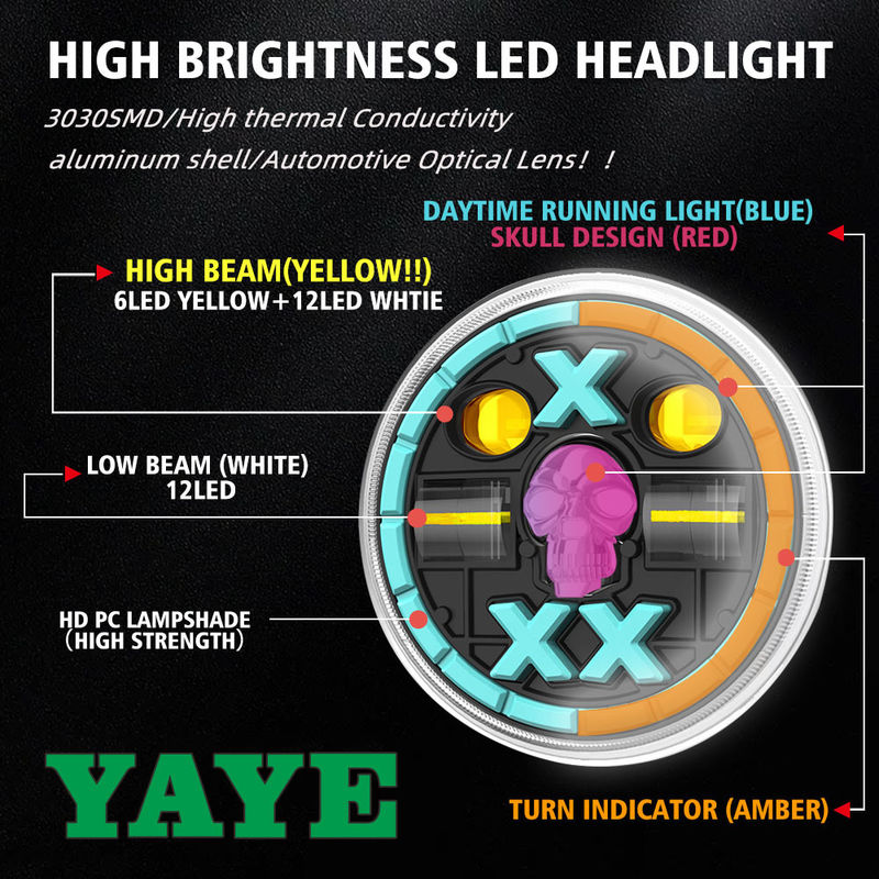 YAYE 5.75 İnç GN125 Sarı Beyaz LED Aksesuar Kırmızı Kafatası Motosiklet Yüksek Düşük Işın DRL Farları Optik Lensli